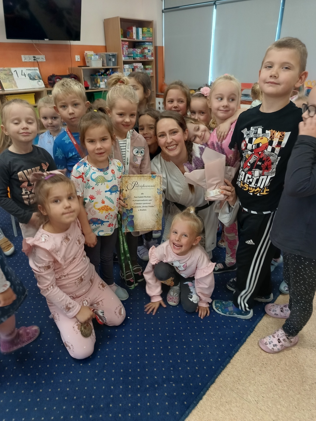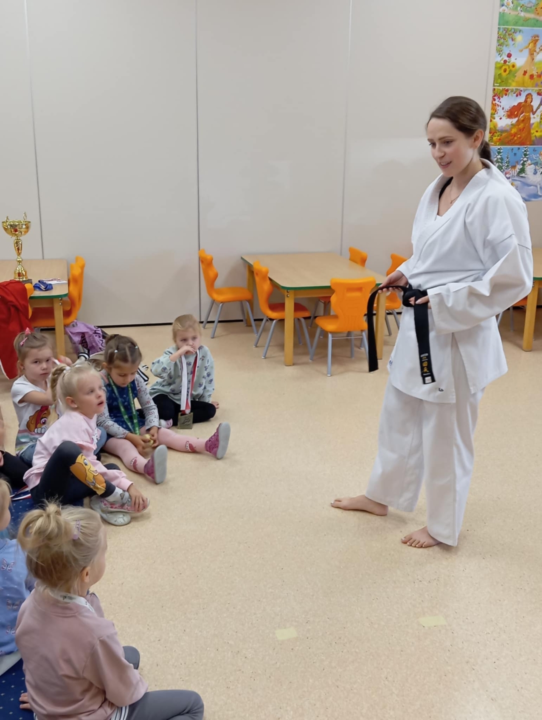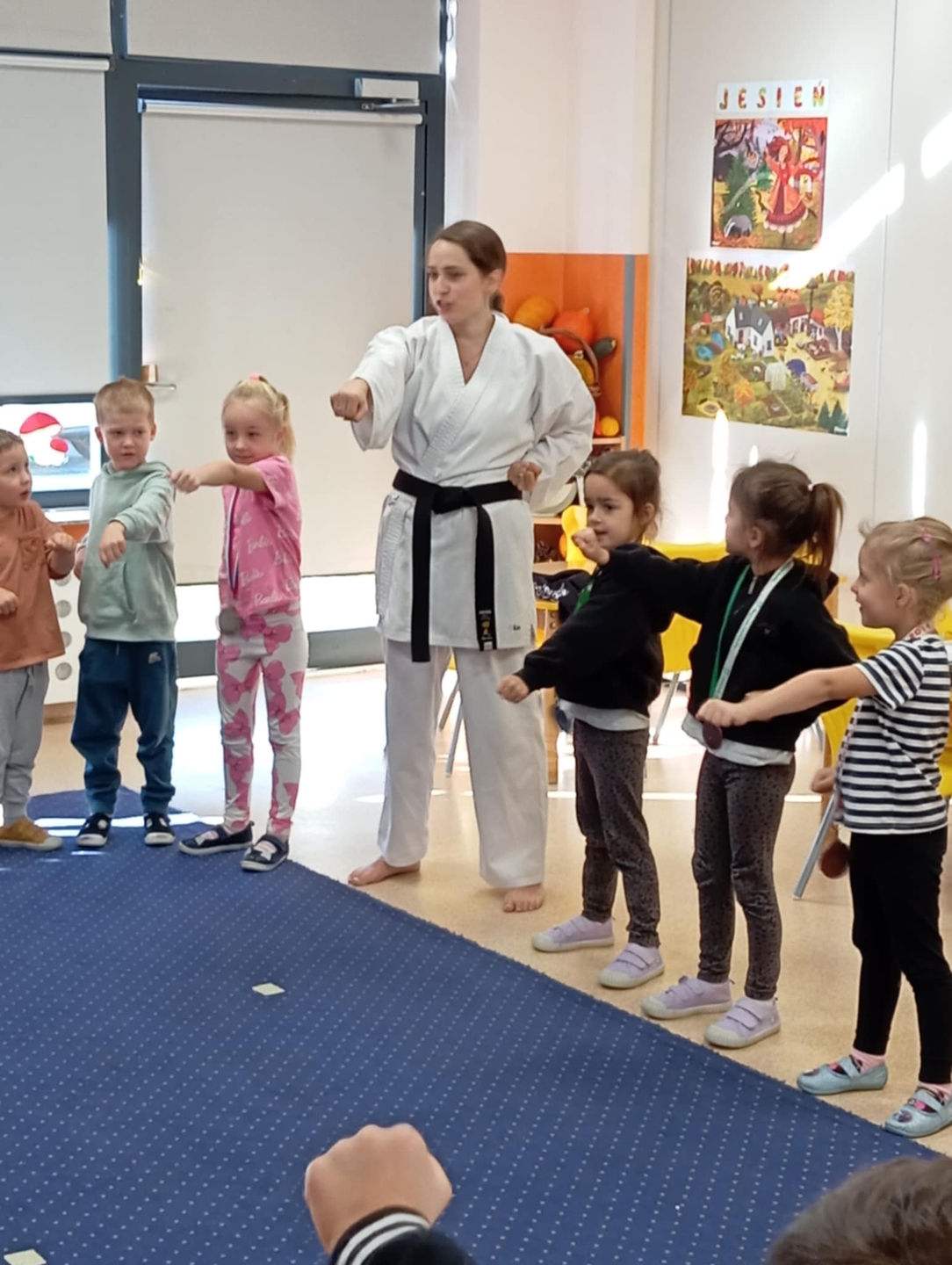 Spotkanie z panią Izabelą Piechotą z Akademii Sportu Chikara Kępno - trening karate w grupie "Konwalie" i "Różyczki" w ramach realizacji projektu edukacyjnego: