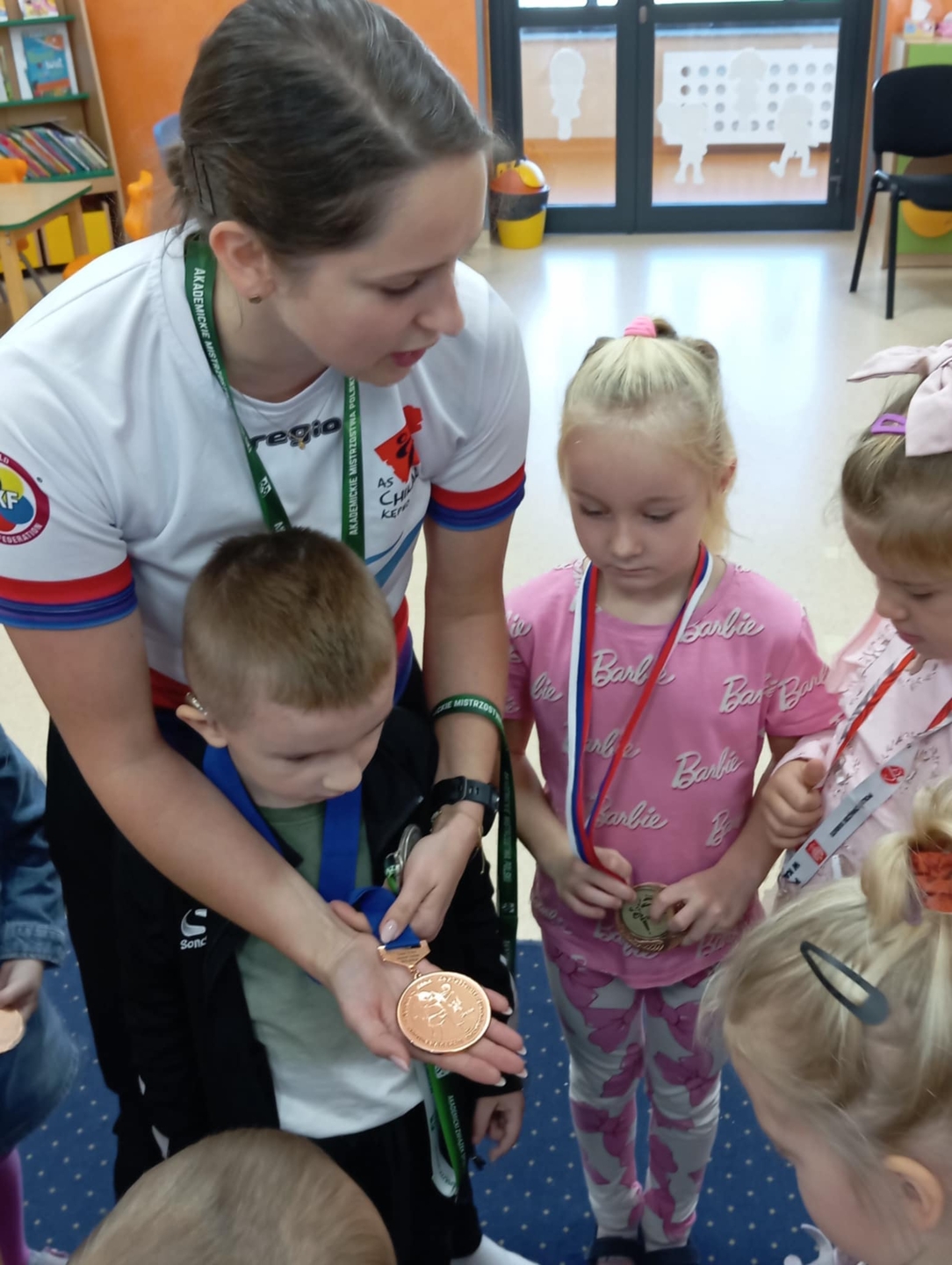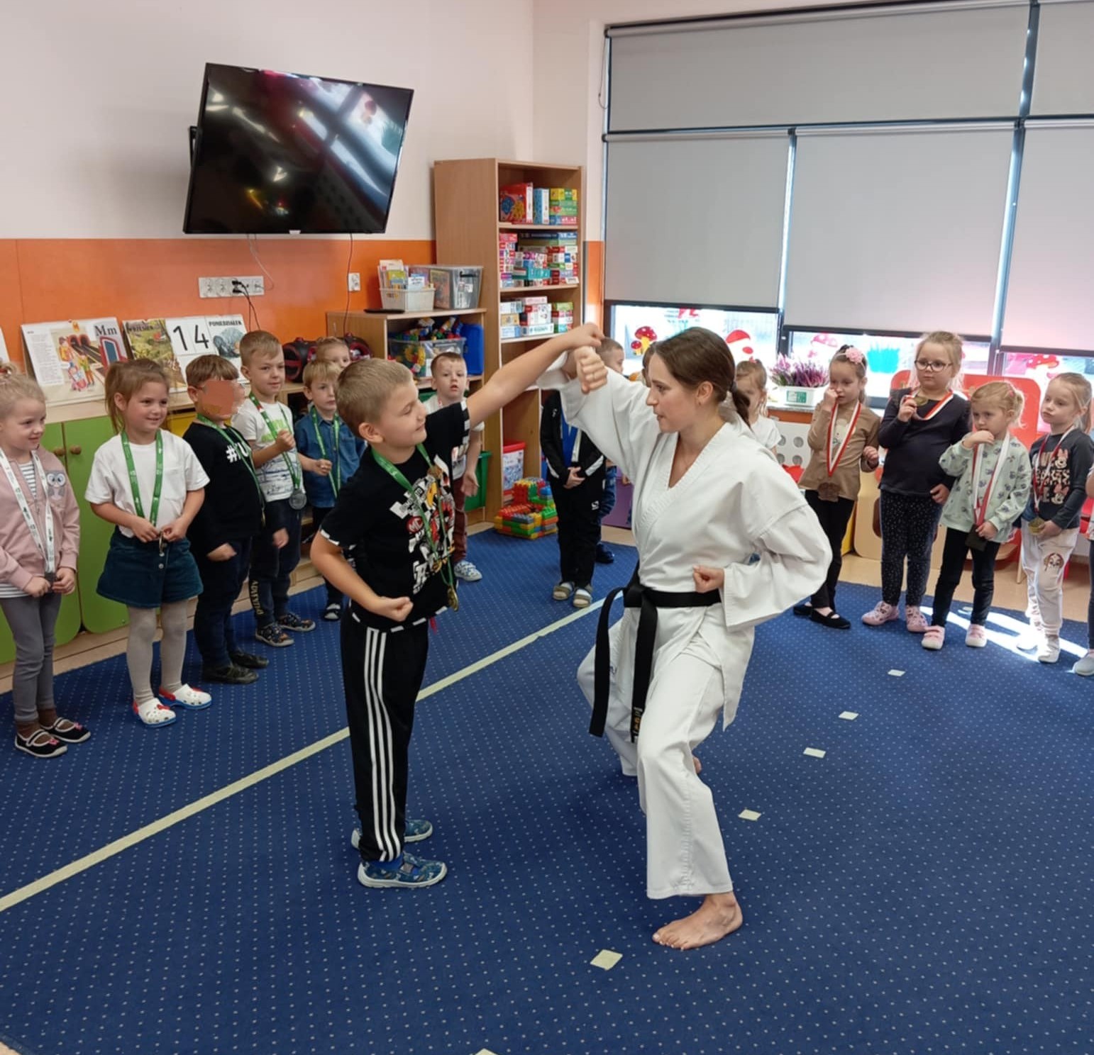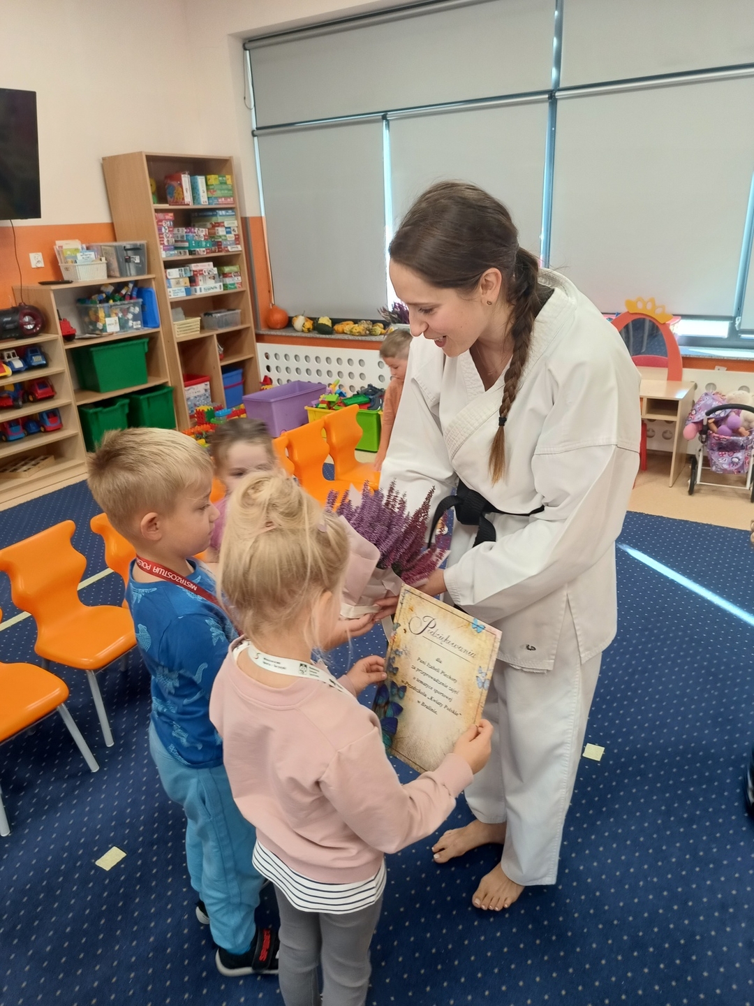 Spotkanie z panią Izabelą Piechotą z Akademii Sportu Chikara Kępno - trening karate w grupie "Konwalie" i "Różyczki" w ramach realizacji projektu edukacyjnego: